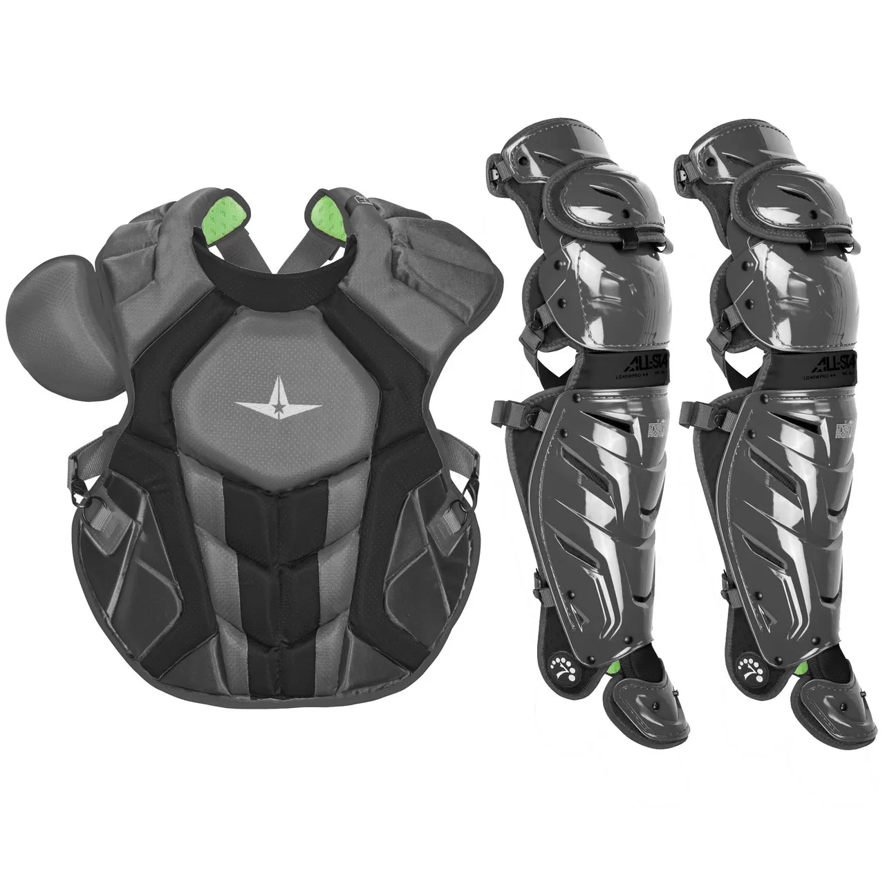 The all new NOCSAE Approved System7 Axis gear from All-Star features many of the loved features of the original System Seven Pro gear plus a few major improvements. The chest protector feels just like the classic and the leg guards, featuring the new motocross inspired LINQ pivoting hinge, are the best ever developed. The best just got better! Available only in Adult size. Recommended for ages 16 and up. Chest protector and leg guards only – Helmet is not included.