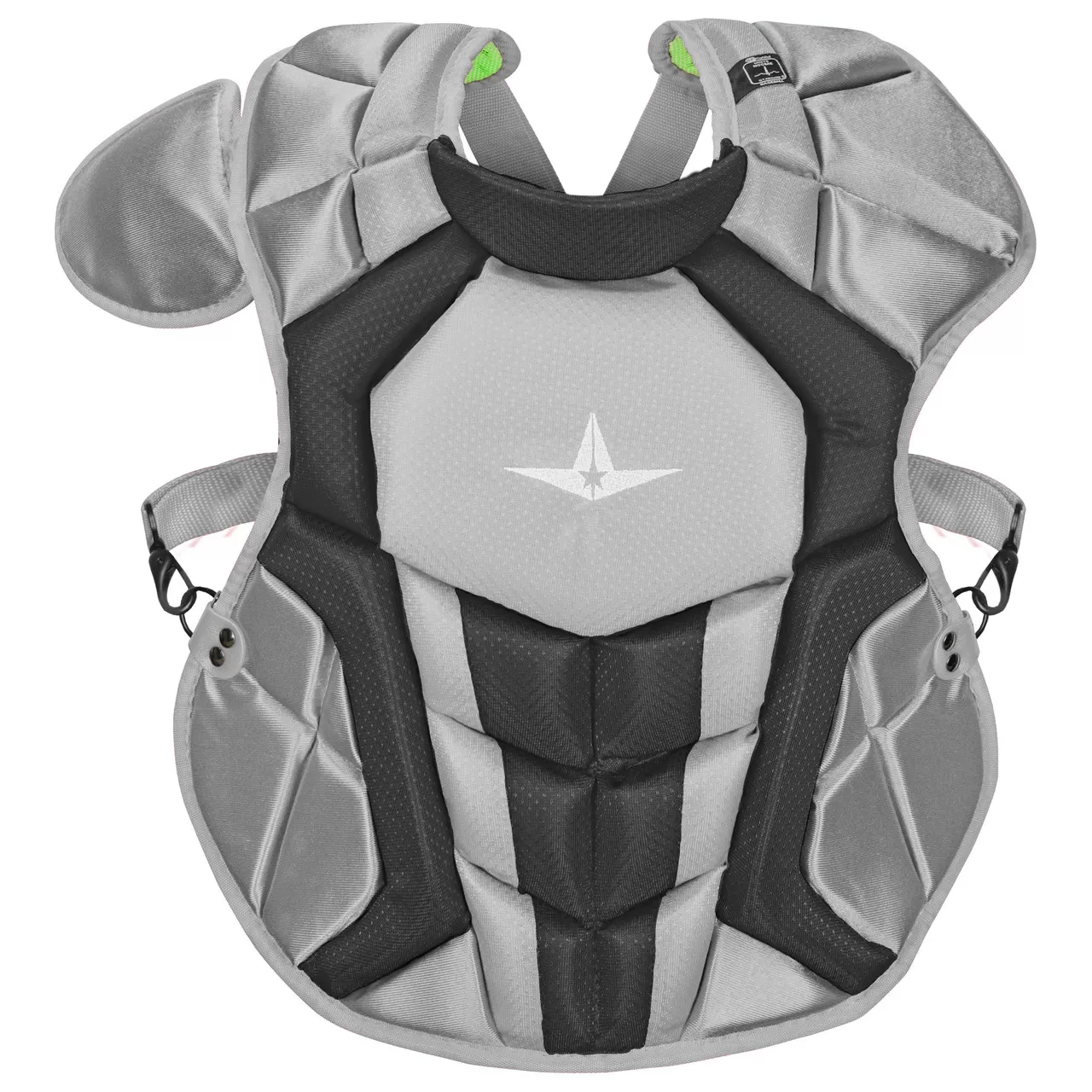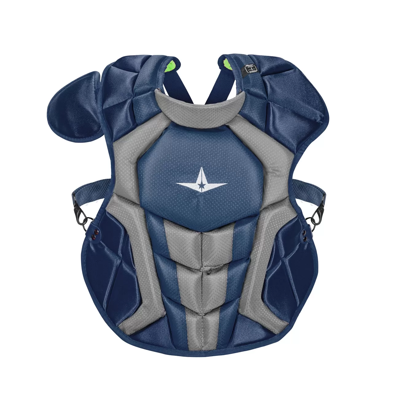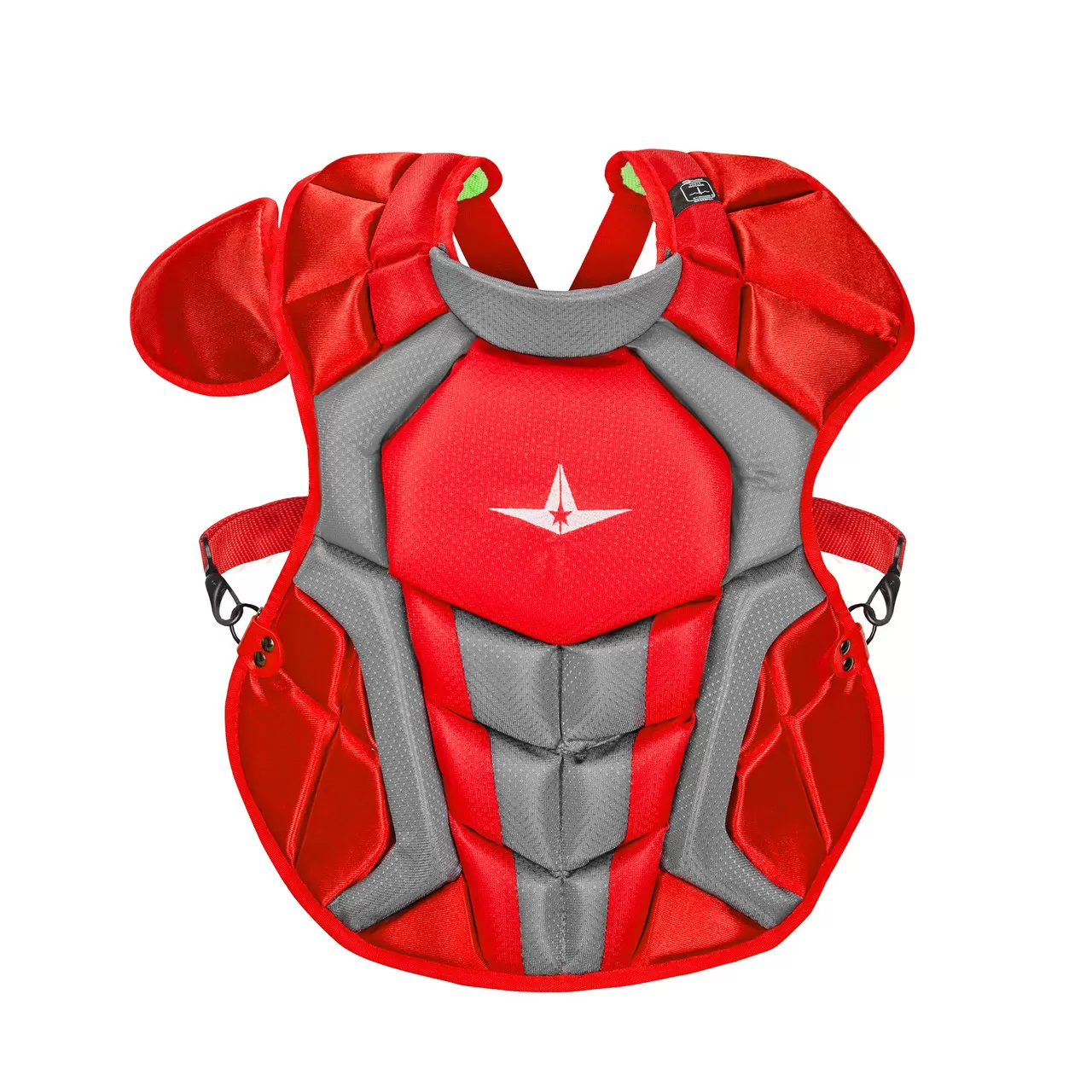 The all new NOCSAE Approved System7 Axis chest protector from All-Star features many of the loved features of the original System Seven Pro gear plus a few major improvements. The chest protector feels just like the classic. The best just got better! Recommended for ages 9-12.