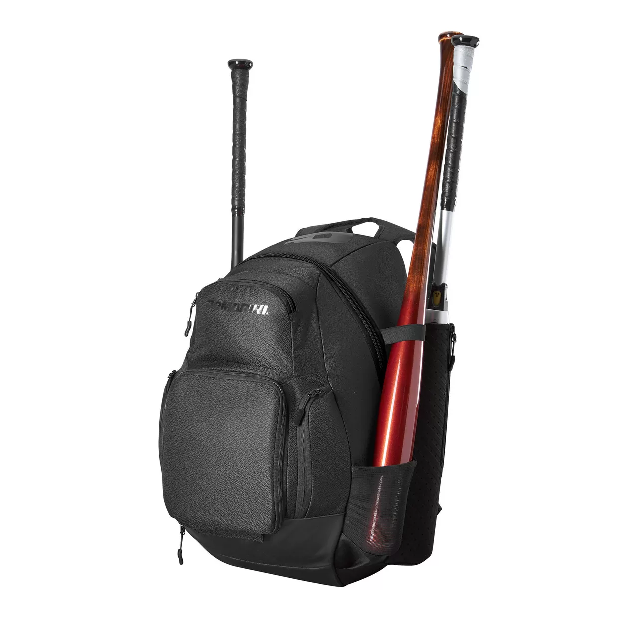 The DeMarini Voodoo XL Backpack is designed for players who love options. An expanded main compartment fits your helmet, glove and gear comfortably. A pair of molded neoprene bat sleeves allows you to take two of your favorite sticks with you wherever you’re headed – and the bag is designed to hold a third bat if needed. Hang your arsenal from the dugout fence with a durable J-style hook, store your valuables in a fleece-lined pocket as you take your full arsenal on the go this season.