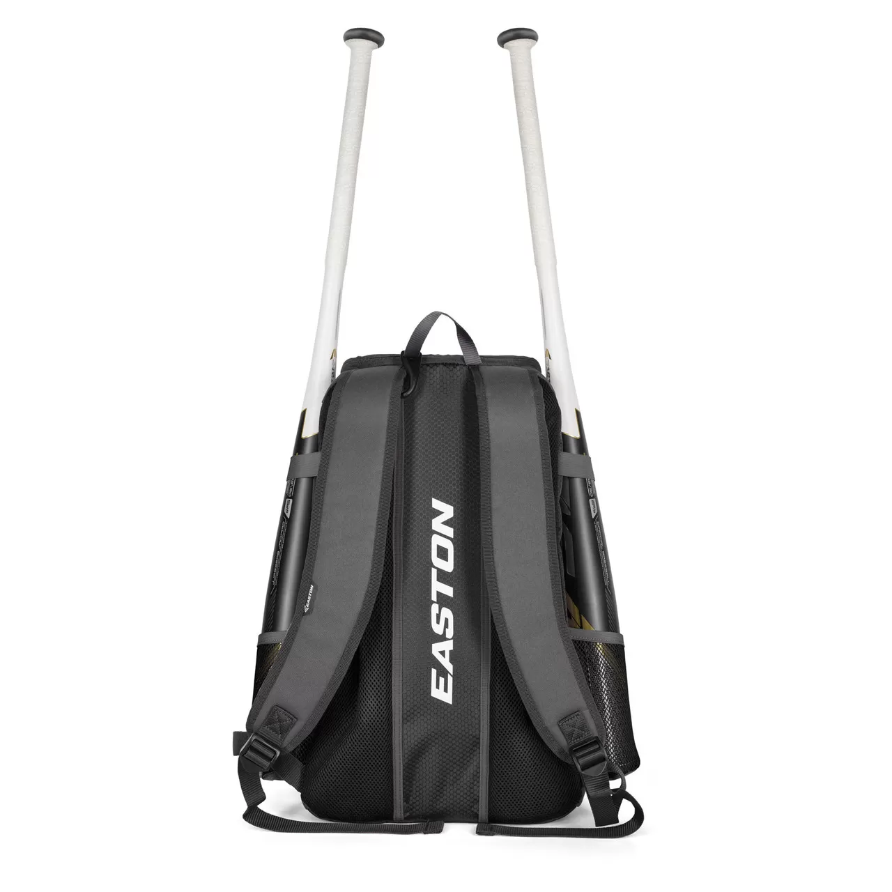 Players will be game ready with Easton’s new Game Ready Backpack, featuring a vented main compartment, a separate vented shoe compartment and 2 side mesh pockets to hold bats and/or water bottles. The front pocket keeps personal items easily accessible and the padded back and shoulder straps keep players comfortable on game day.