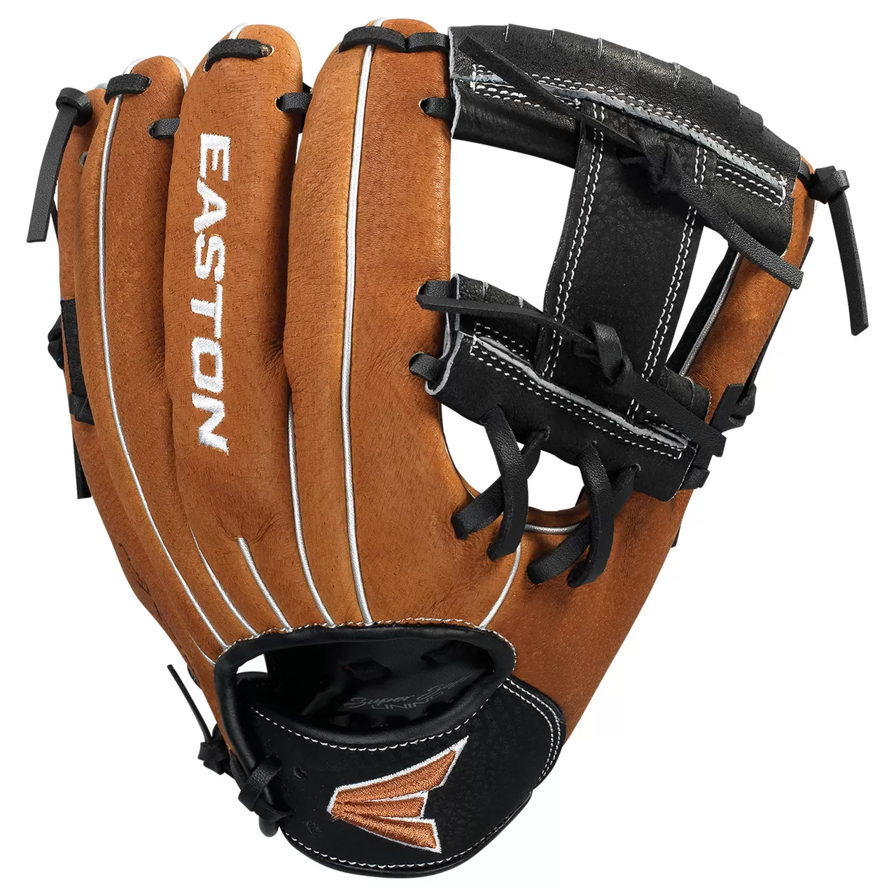The all new Easton Professional Youth Series features soft genuine pigskin leather combined with an embossed Hyperlite synthetic. The Flex Notch closure system makes the glove easy to squeeze and the extended finger gussets offer a better fit and more leverage.