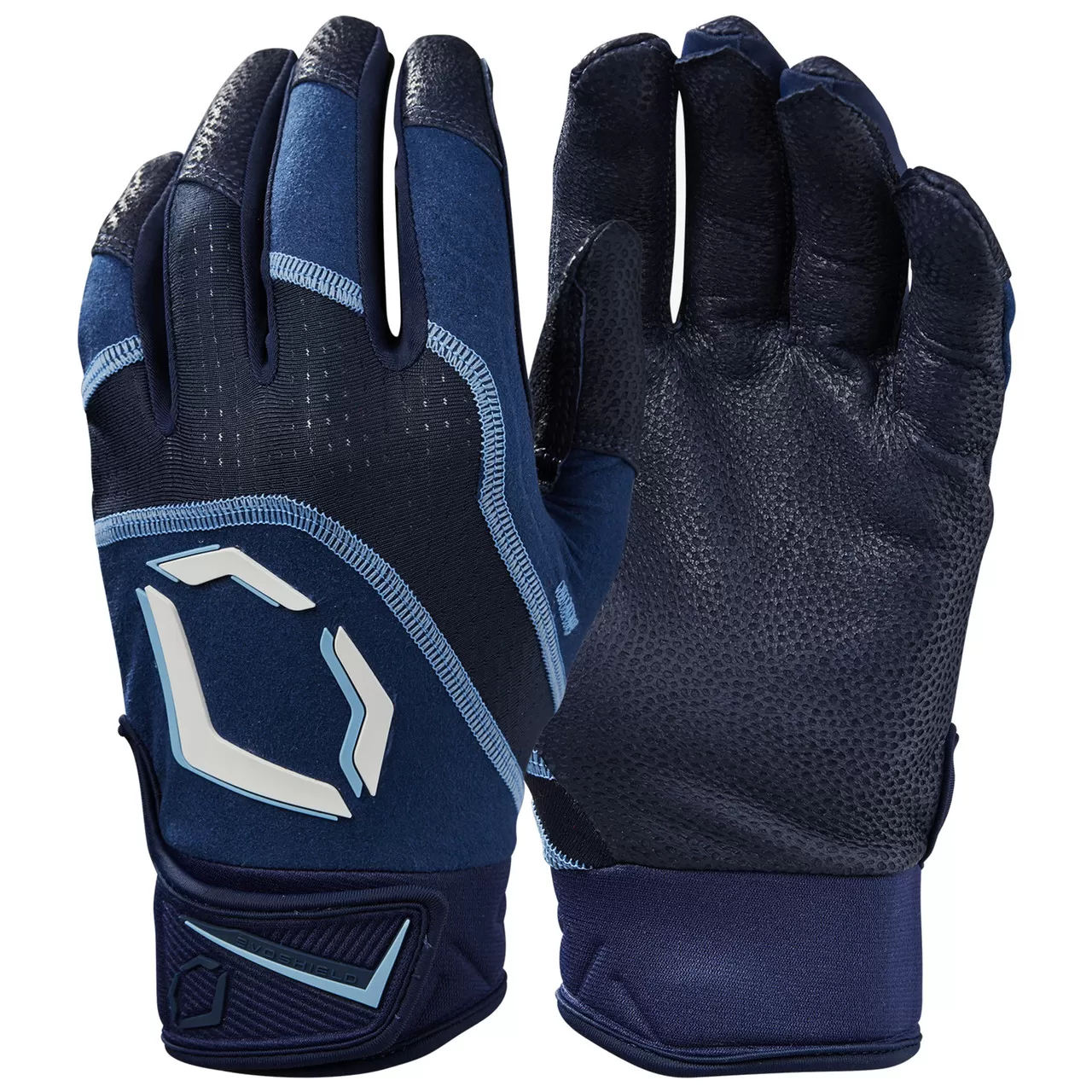 Wreak havoc at the plate. The Khaos Batting Gloves from EvoShield deliver elite performance and unrivaled grip with a lightweight suede backhand and a premium sheepskin palm, meaning you can ditch the pine tar when you step into the batter’s box. Bold stitching colors and a raised silicone logo let you showcase your swagger when you dig in, and mesh inserts along the knuckles allow for full mobility and comfort so you can do maximum damage.