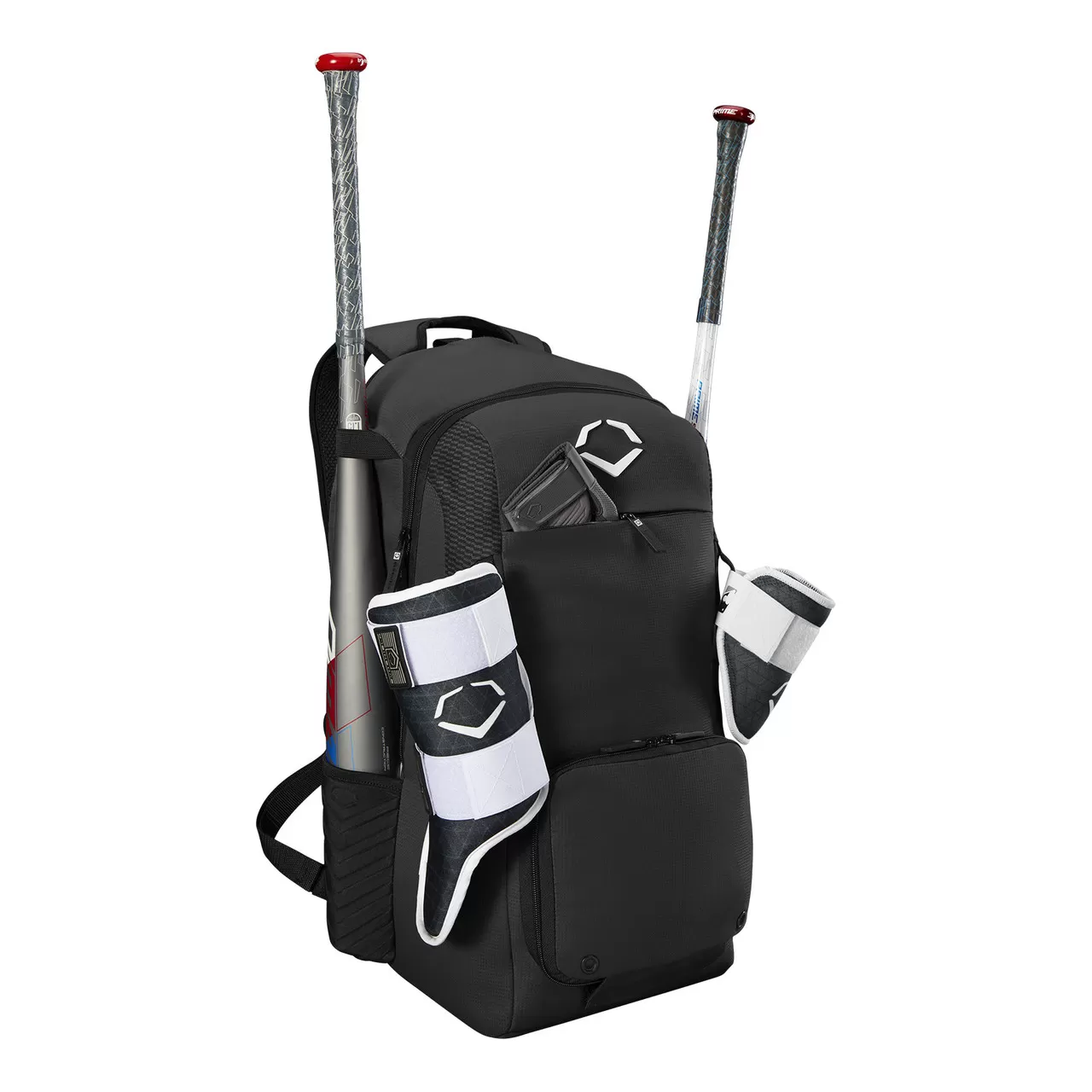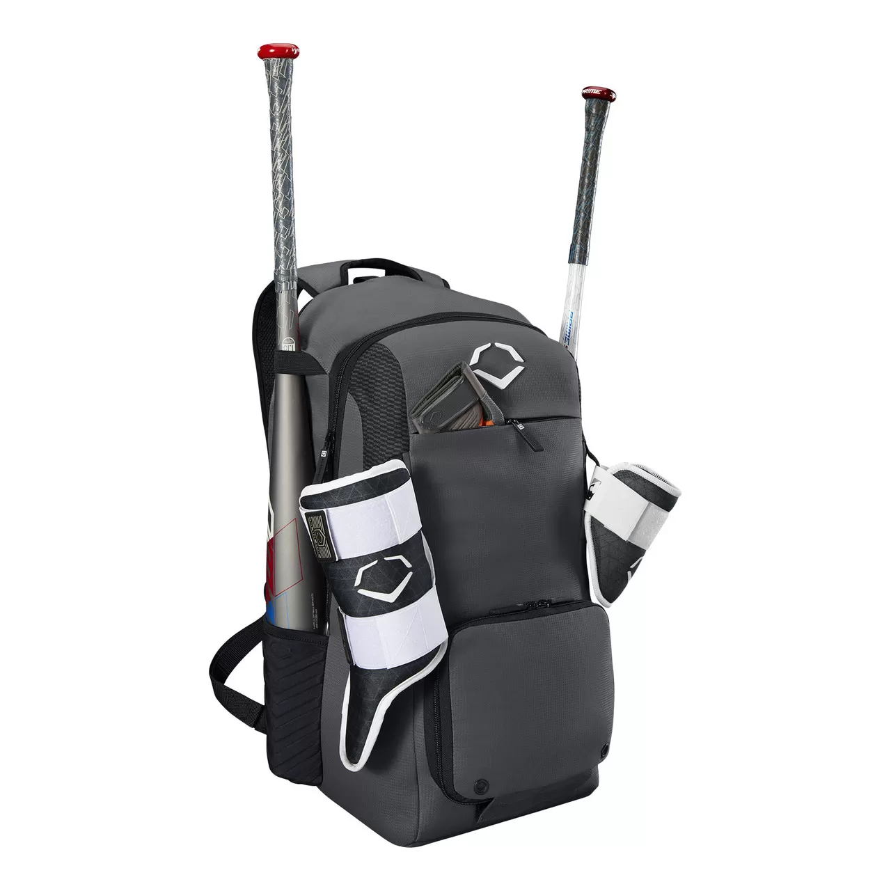 Show up in style this year with the EvoShield Standout Backpack. Designed for the serious ballplayer, this pack features a main compartment big enough to fit a helmet, gloves and cleats, two zippered bat sleeves and separate electronic compartments. A durable J-style fence hook and padded shoulder straps and backing bring you functionality and comfort wherever you go.
