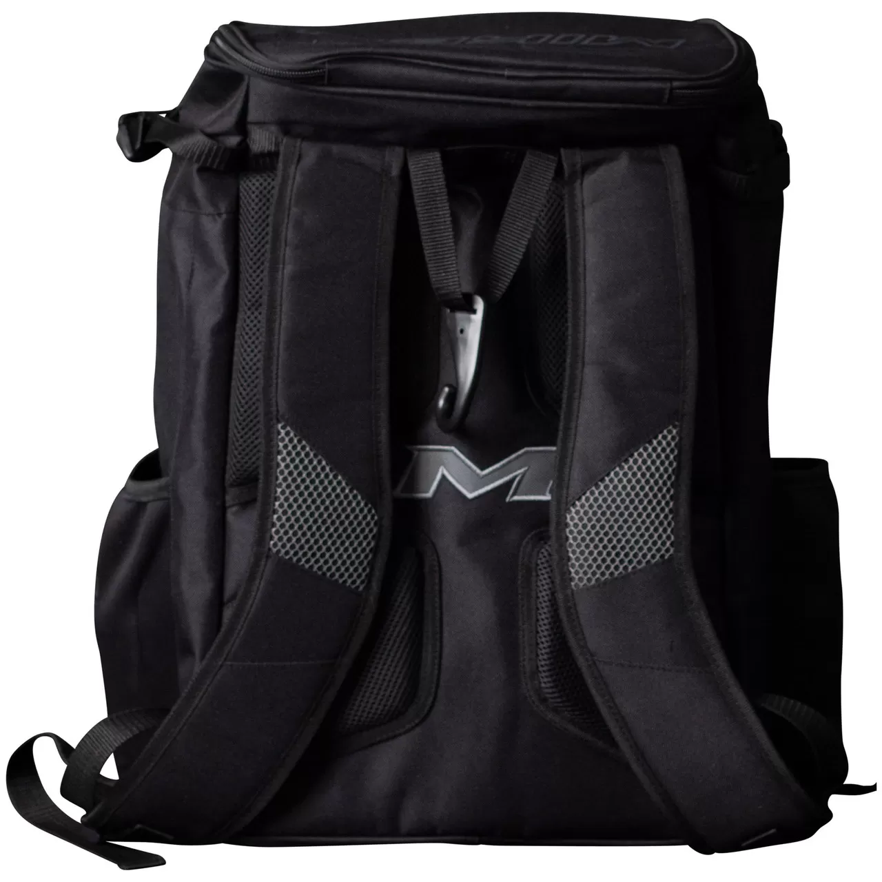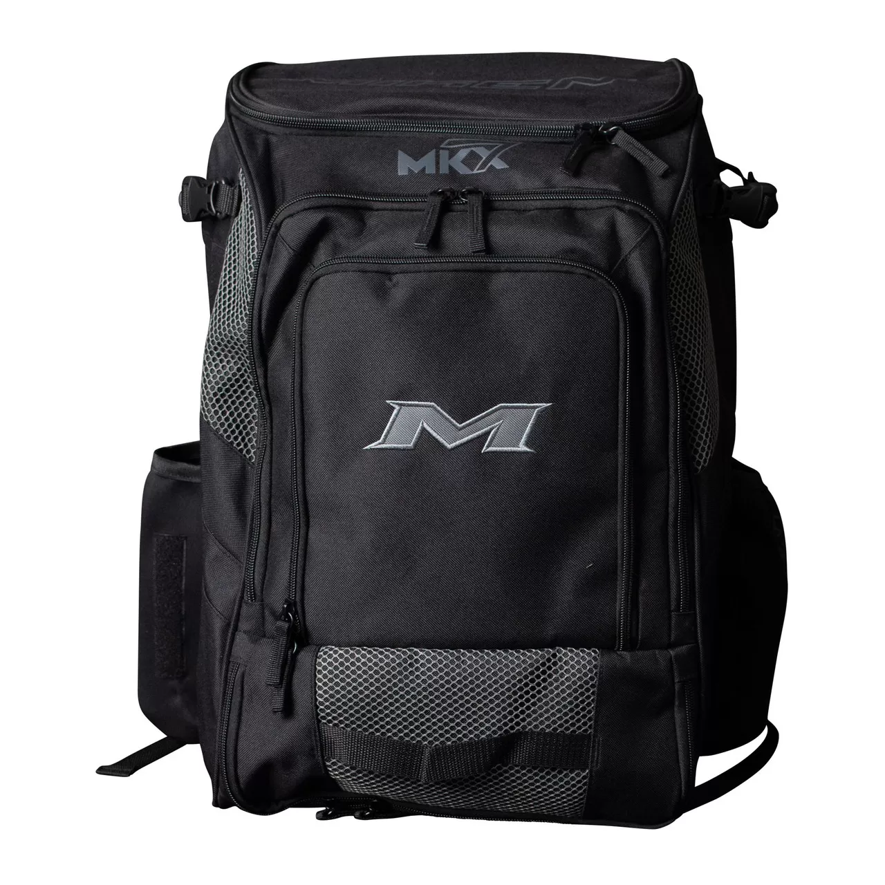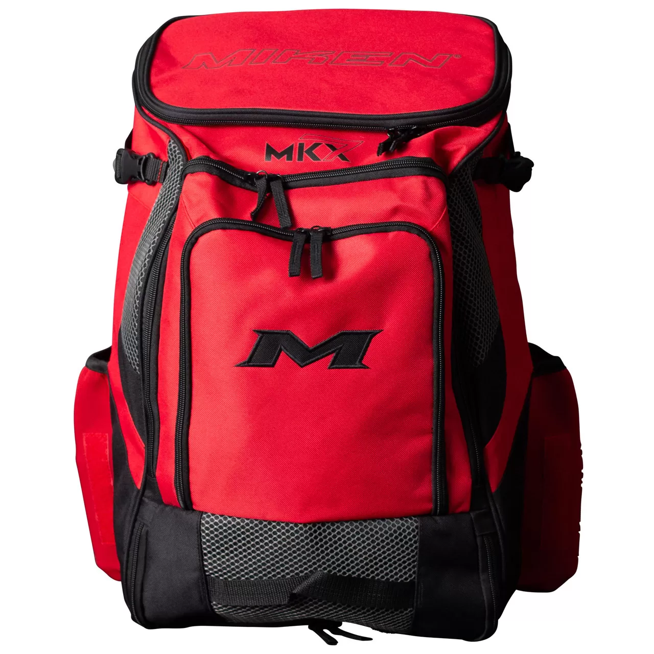 The all new Miken Backpack features 2 elasticized neoprene bat sleeves, a durable “J” style fence hook, top valet tray with lined pocket for phone, front storage pocket, separate shoe pocket on bottom, Velcro strip for exterior batting glove storage, and an easy to clean tarpaulin bottom.