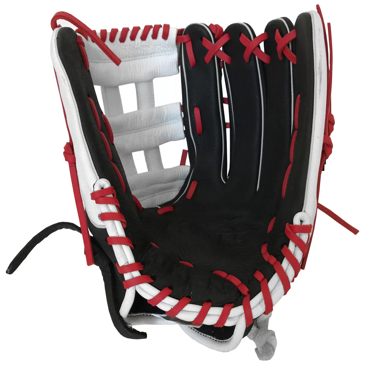 The new Player Series line of gloves from Miken feature professionally inspired slowpitch specific patterns with enlarged pockets designed for 12″ softballs. These gloves come game ready with full-grain leather construction for enhanced durability and “off- the-shelf ” performance. Miken has also employed PORON XRD Technology both in the palm and index fingers designed to significantly reduce ball impact. This glove has an adjustable non slip pull strap back for a custom fit.