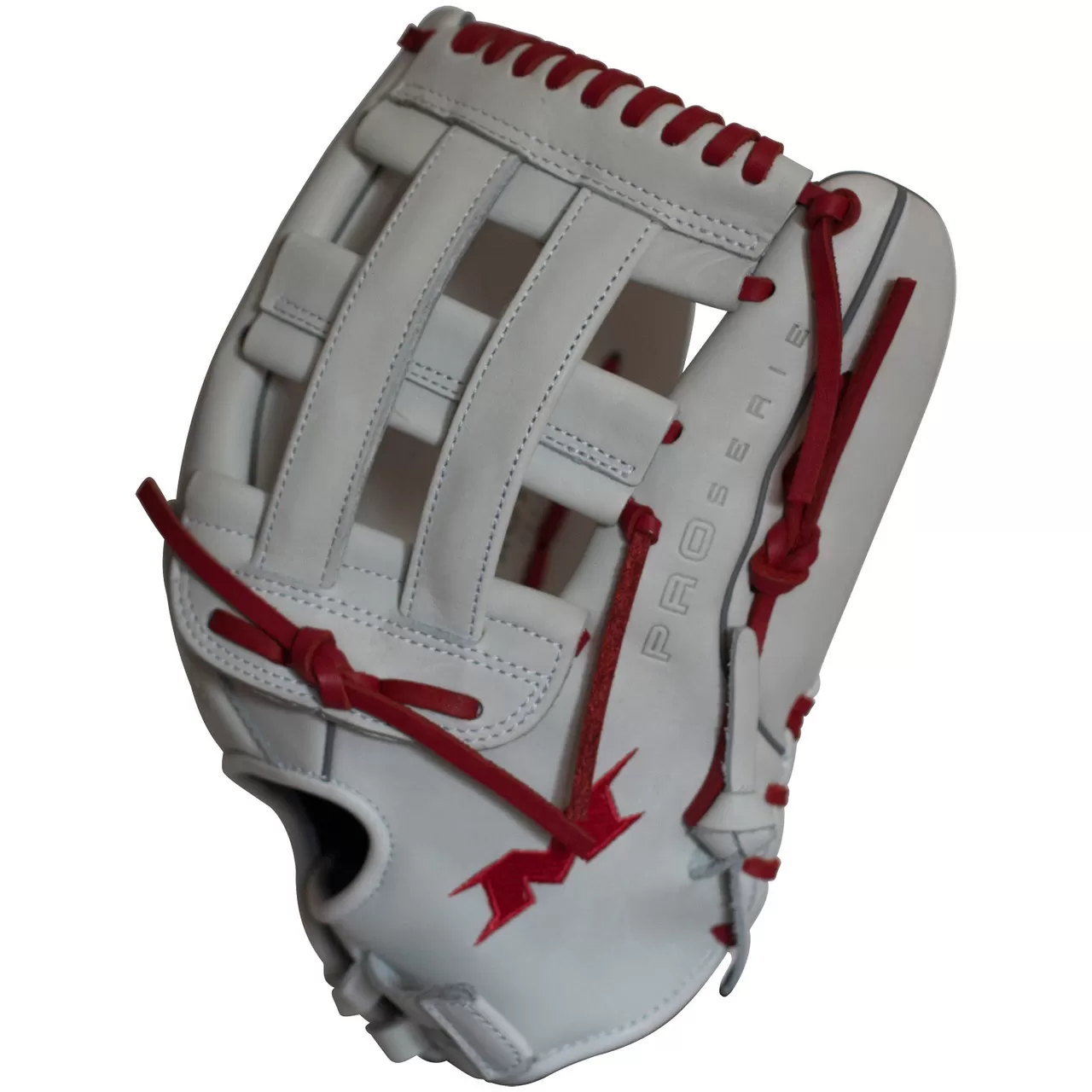 The new Pro Series line of gloves from Miken feature authentic professional slowpitch specific patterns and construction, along with quality soft full-grain leather for improved shape retention and limited player break-in. This glove also features Poron XRD palm and index finger pads designed to significantly reduce ball impact and an adjustable non slip pull strap back, for a custom fit.