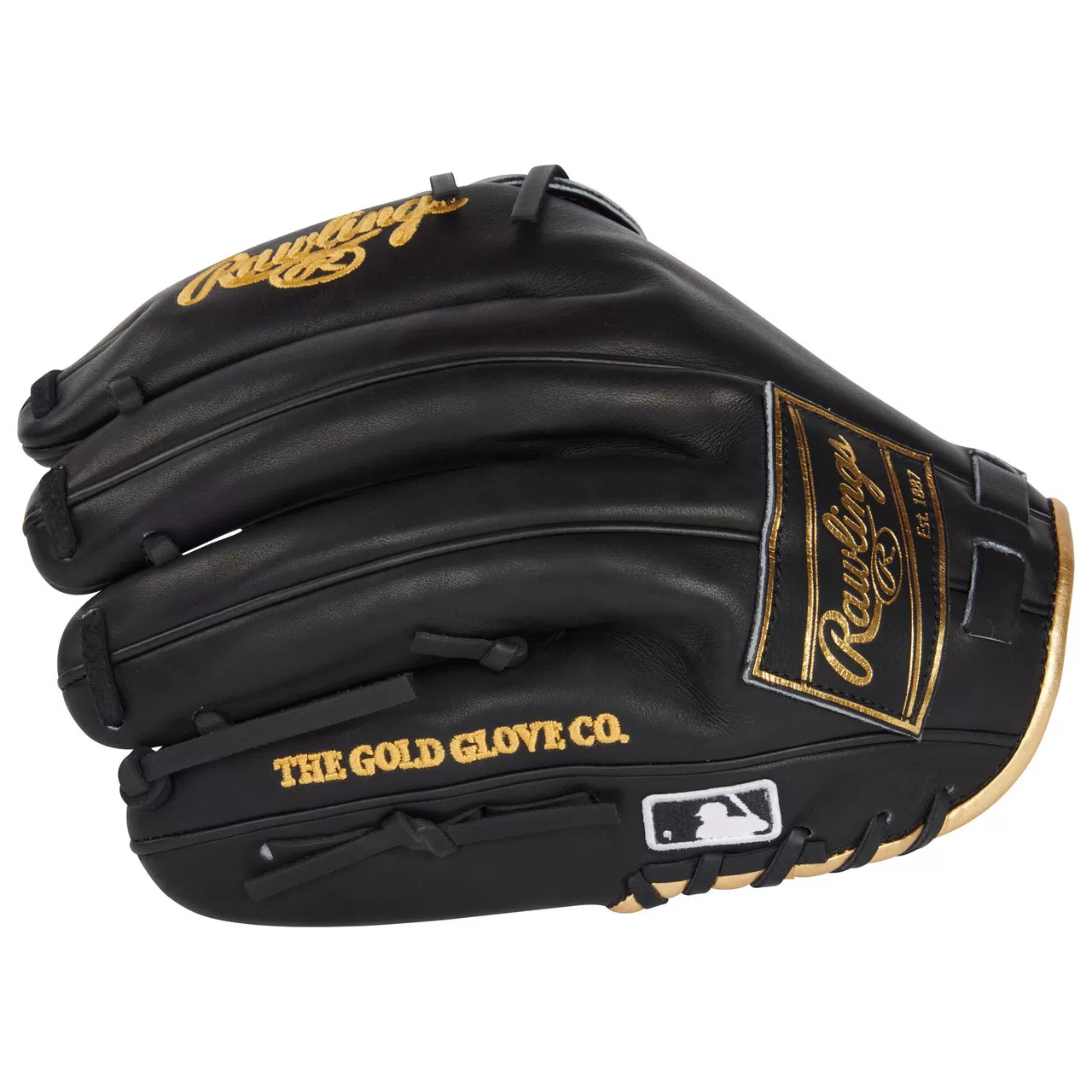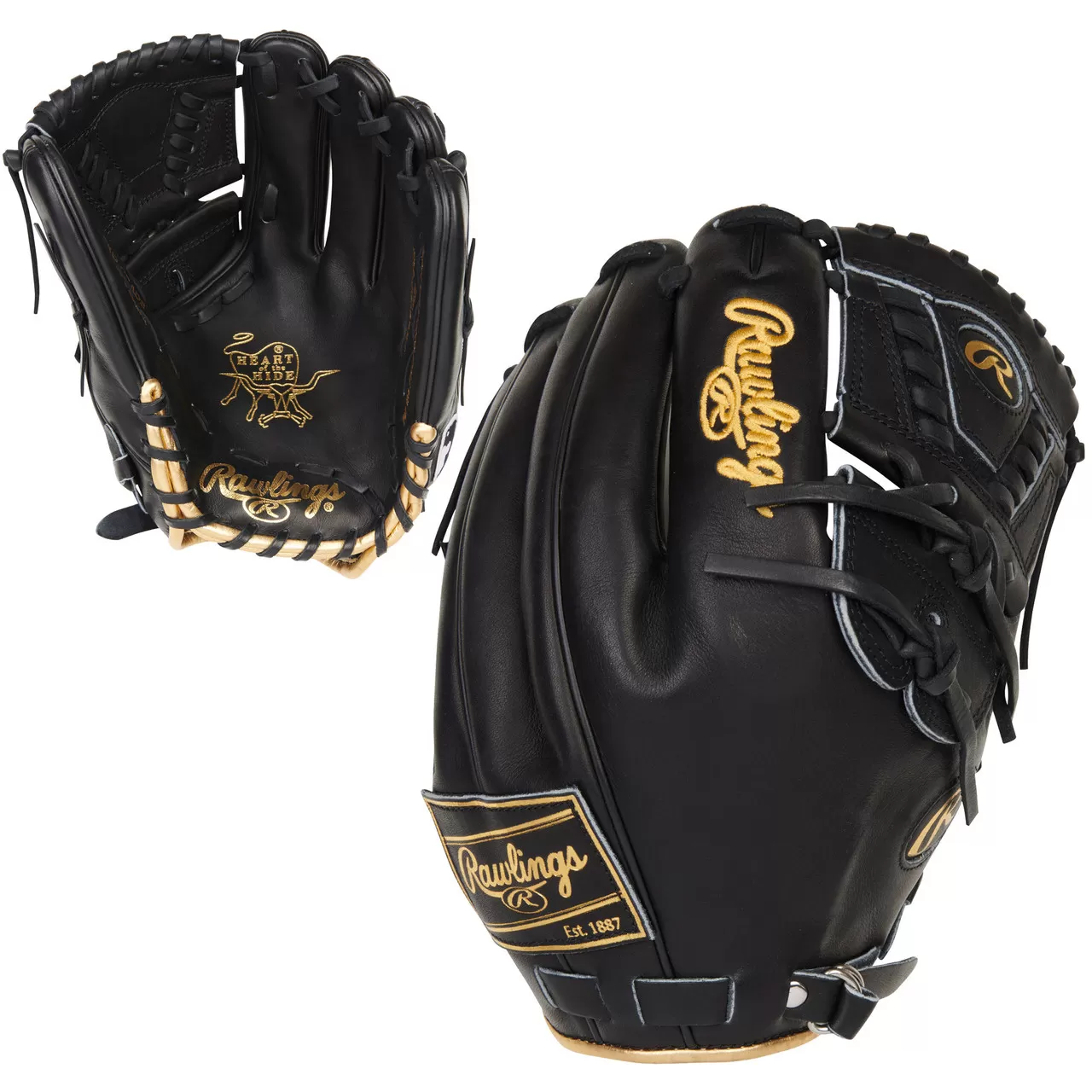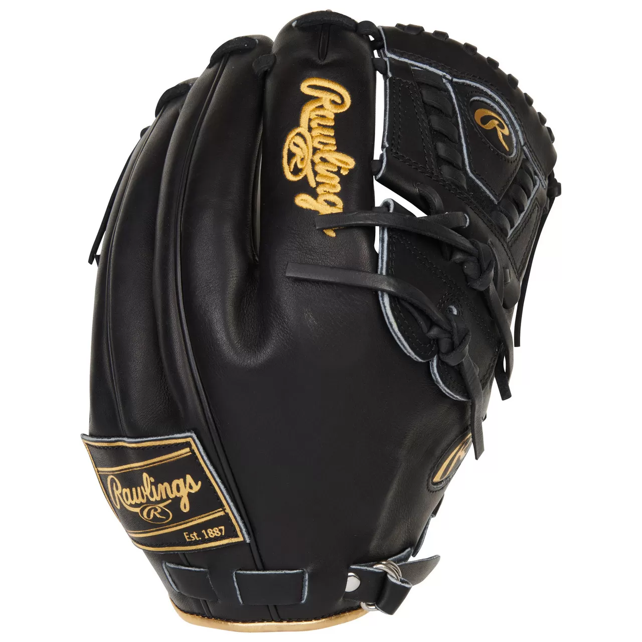 The seventh edition of Rawlings’ exclusive Pro Label line is an absolute stunner. The Pro Label 7 Black comes with a striking closed-back shell, providing a sleek profile and more glove control when you’re in the field. In addition, this glove is made with world-renowned Heart of the Hide leather, so you know it’s going to hold its performance season after season. Against a mesmerizing all-black colorway, this glove’s gold accents send a message of elegance and swagger. Also, the 12” Pro Label 7 comes in a new, versatile 200 pattern, so you can move around the diamond and get reliable performance at multiple positions. As an added touch, the Pro Label 7 features an ultra-rare leather Rawlings patch, setting it apart from any glove you’ll find on store shelves. Each Pro Label 7 is individually crafted by the world’s top glove makers. When you put yours on, you’ll feel the dedication and hard work that comes with turning a glove into a true work of art. Get your Pro Label 7 Black infield/pitcher’s glove today!