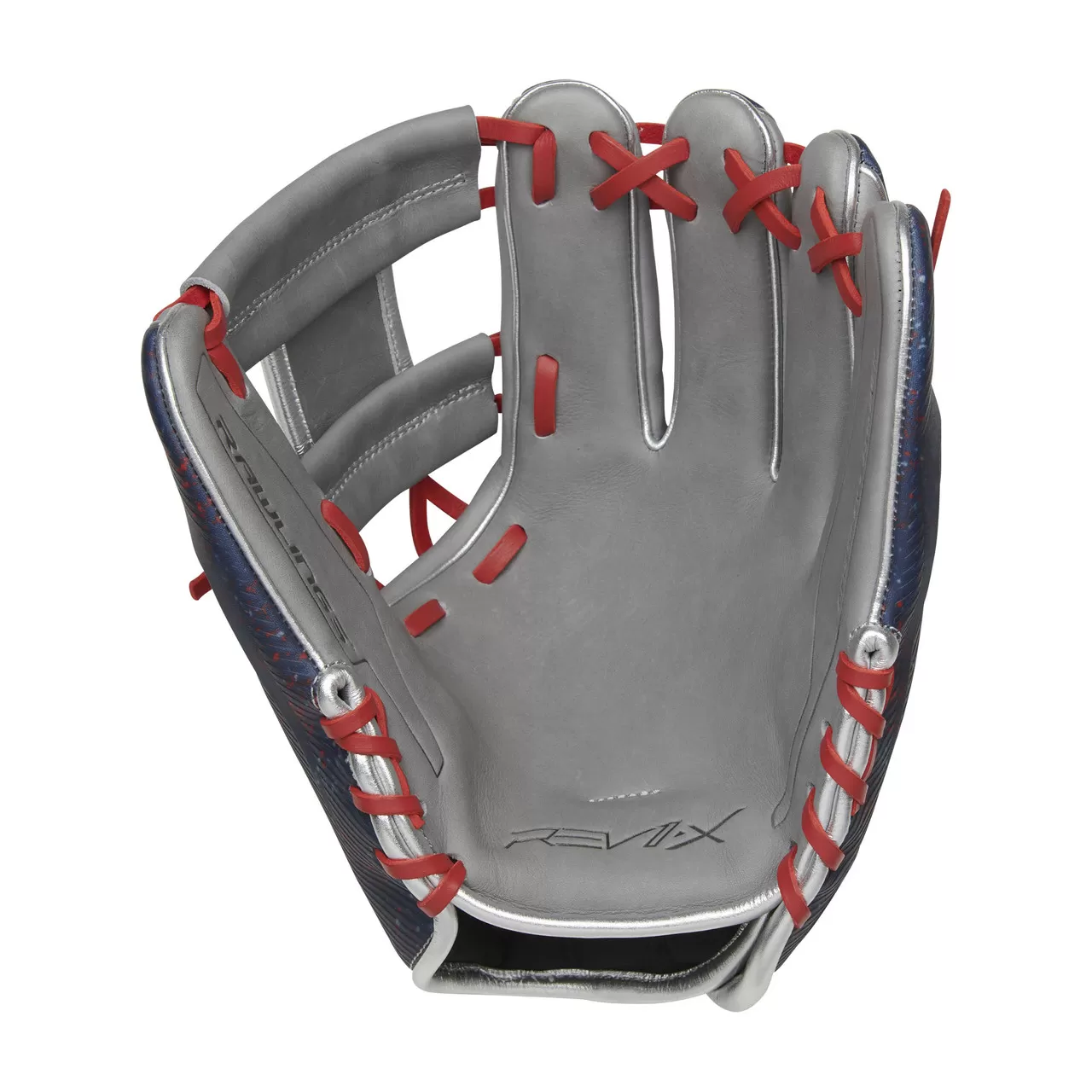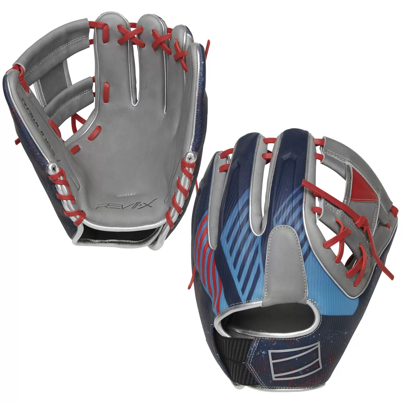 After years in the lab developing and testing new game-changing technologies, our engineers created the REV1X Series! It will revolutionize the next generation of athlete. Thanks to its unparalleled design innovations, the Rawlings’ REV1X ushers in the future of gloves. Working closely with several of the game’s top pros, like Francisco Lindor, we developed an incredibly scientific build and design process that led to several key breakthroughs. Constructed from the highest quality materials, the 2022 REV1X 11.5-inch infield glove features new, innovative technology that will take your game to the next level. While the design on the back may catch your eye; the construction of the REV1X infield glove will make you rethink everything you know about your gamer. Combining our legendary Heart of the Hide steer-hide leather palm and gusset, with advanced manufacturing techniques resulted in a defensive masterpiece. Using Carbon’s Digital Light Synthesis (DLS) method, we created a perfect, 3D-printed lattice structure in the thumb and pinky. Unlike traditional gloves’ wool padding – that breaks down and gets floppy over time – these 3D-printed pieces provide variable stiffness that lasts and lasts. That means you get a glove that won’t break down, and maintains the perfect balance of support and playability too! This advanced fabrication process also drastically reduces the weight. As a result, the REV1X 11.5-inch infield glove will give you unrivaled feel and protection, without sacrificing durability. In addition, we’ve crafted our REV1X series gloves with a multi-layer back too. Each model even has its own molded, 3D-sublimated design. The 11.5-inch REV1X glove is equipped with a stylish gray, red & blue color-way with an extremely eye-catching sublimated graphic that is sure to turn heads on the field. The revolutionary lace-less I-web and heel will also help you stand out. This innovative new feature allows you to have a completely consistent feel, to make sure you’re snagging everything hit your way. And with the ultra-premium ‘HOH’ leather in all the right places, these REV1X gloves boast the same professional quality break-in & performance you expect from Rawlings. For added comfort, this REV1X infield glove even features an adaptive hand opening. This allows you to get a ‘custom fit’ on your wrist every time you put it on. The 2022 REV1X 11.5-inch infield glove will completely change your game. Join the REVolution today, buy now!