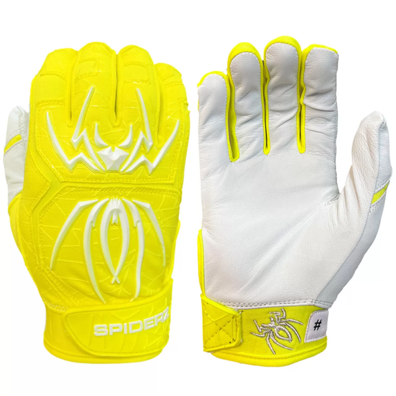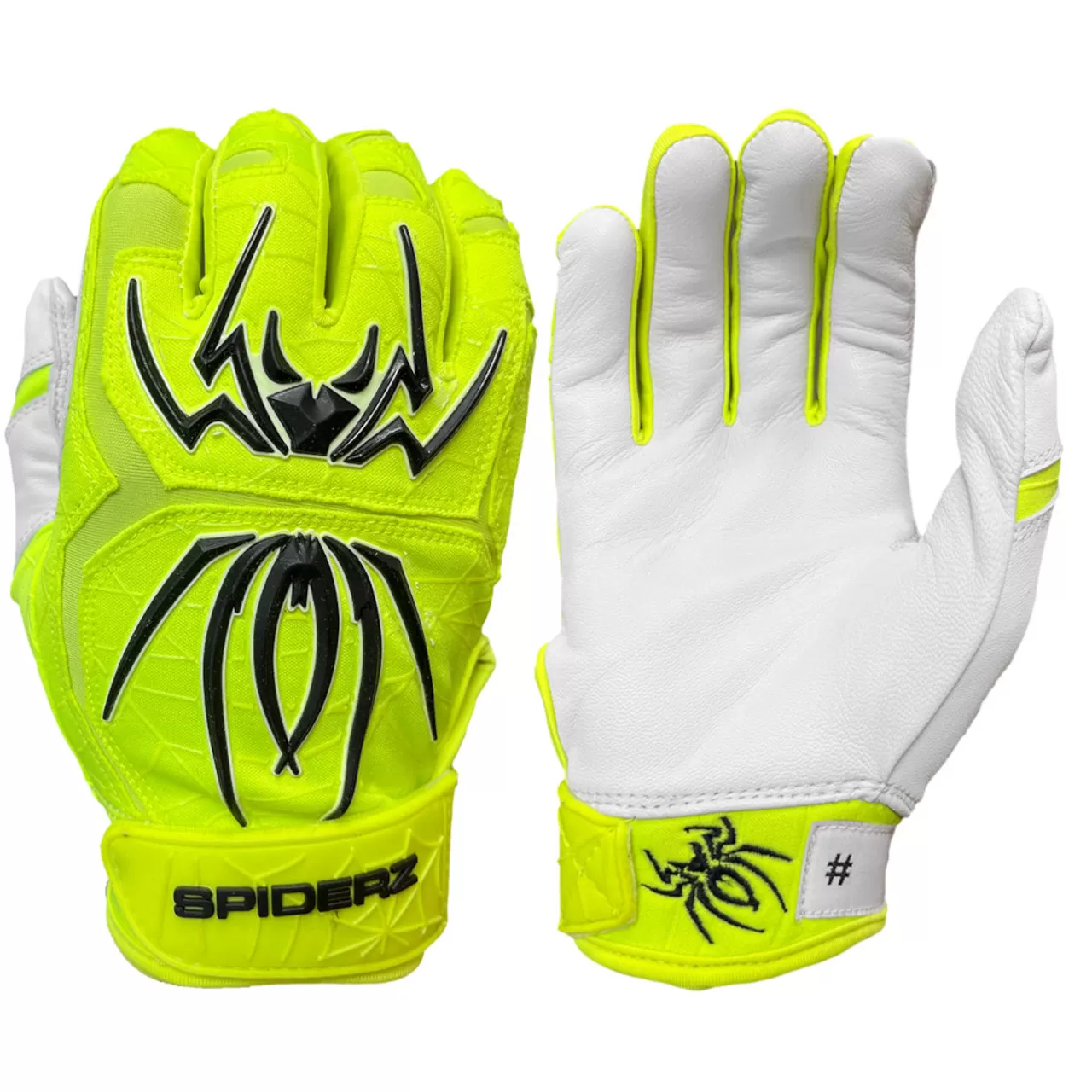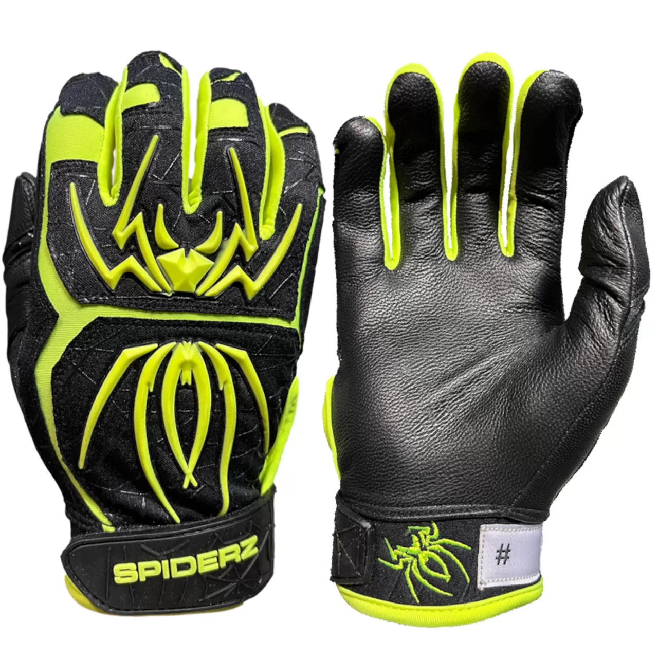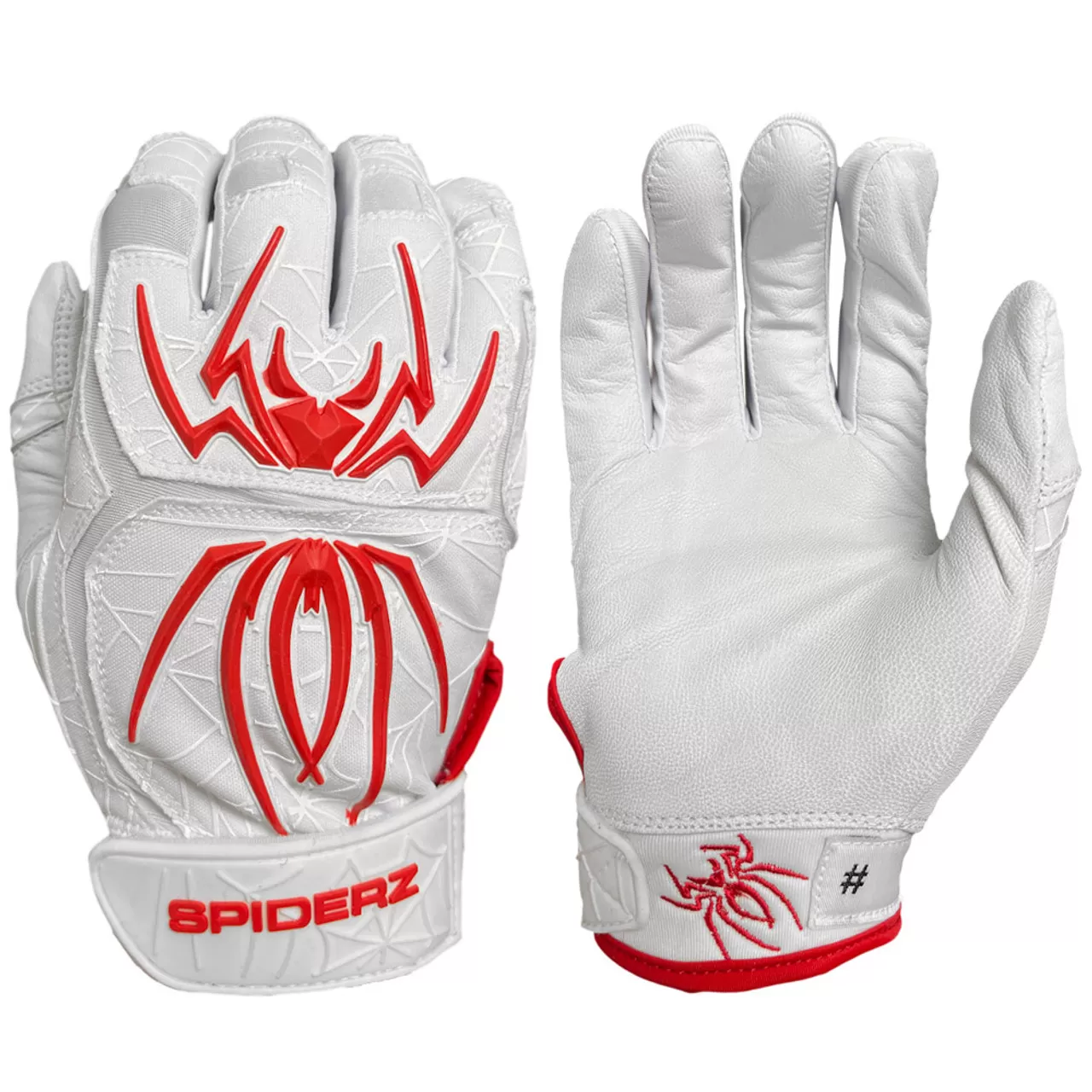 The new ENDITE series batting gloves from Spiderz feature a smooth and soft leather palm, flexible polyester top hand fit with raised Spider logo and a triple reinforced wrist strap. When both FEEL and DURABILITY are important to you, the Spiderz ENDITE has you covered.