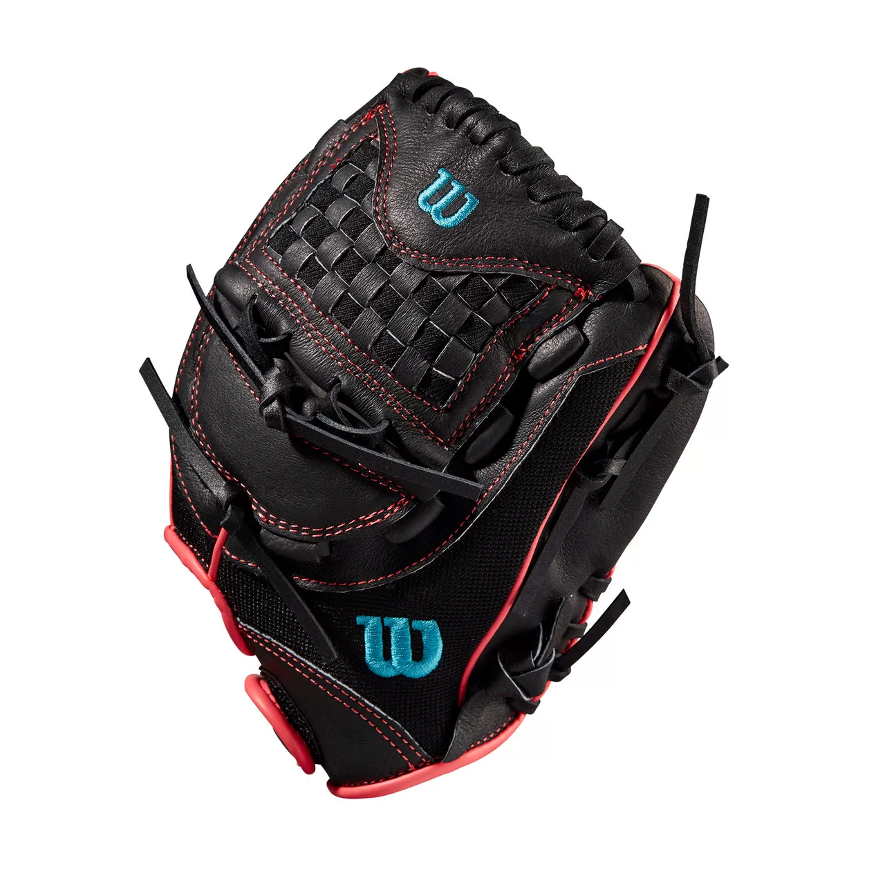 Show your young ball player the ropes with the 2022 Flash 11.5” Fastpitch Infield Glove. The eye-catching Black, Watermelon, and Tropical Blue design are game-ready, and the Closed Corset Web is perfect for learning any position.